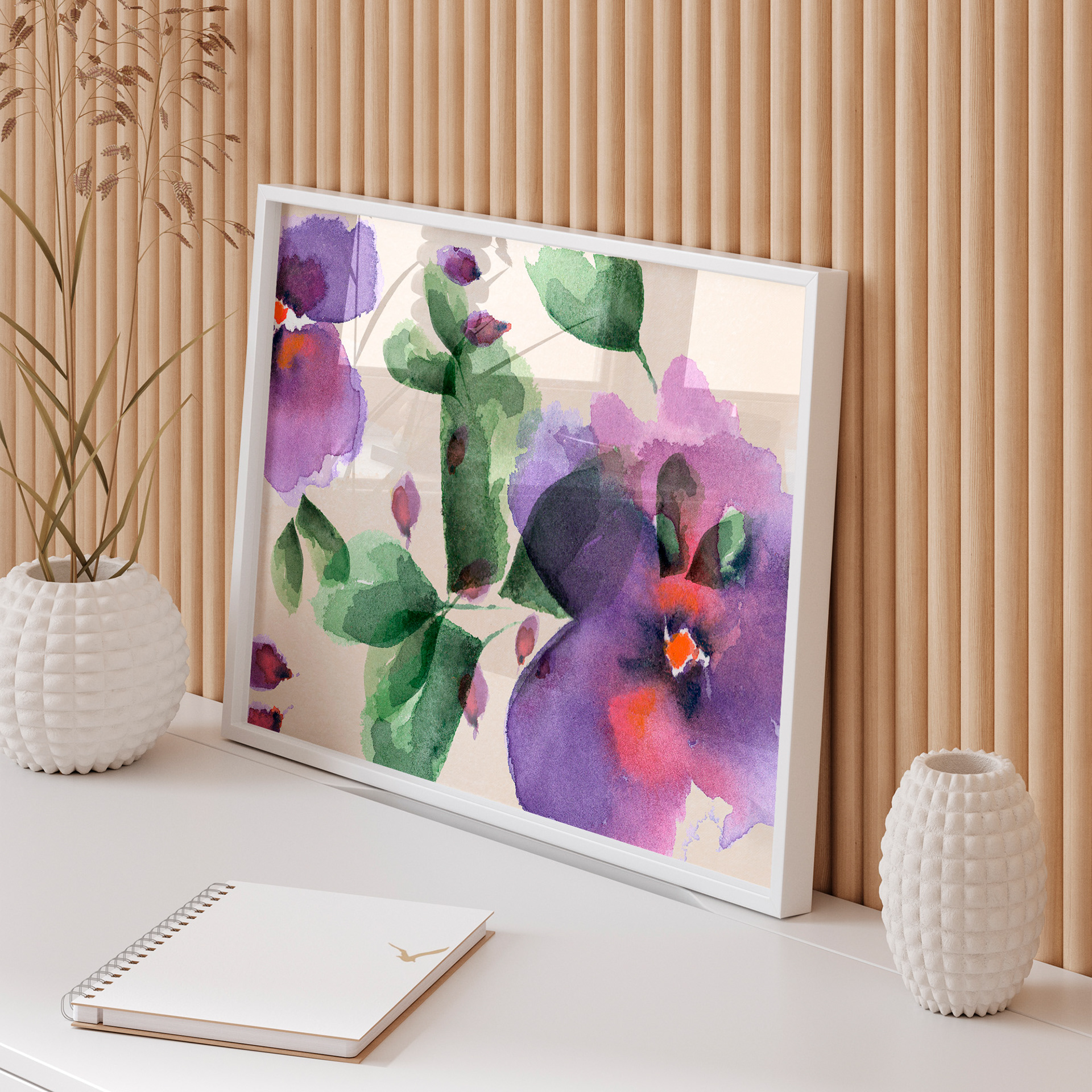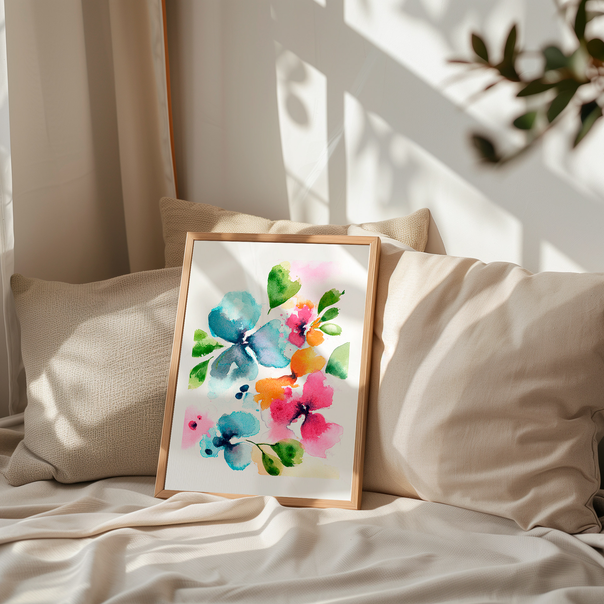 Años es una acuarela floral de estilo suelto y contemporáneo, donde las transparencias violetas y verdes evocan el paso del tiempo y la belleza que permanece en la naturaleza. Esta obra transmite frescura, sensibilidad y un aire romántico, ideal para proyectos de decoración, branding artístico o colaboraciones con empresas que buscan integrar arte floral moderno y lleno de vida en sus propuestas.