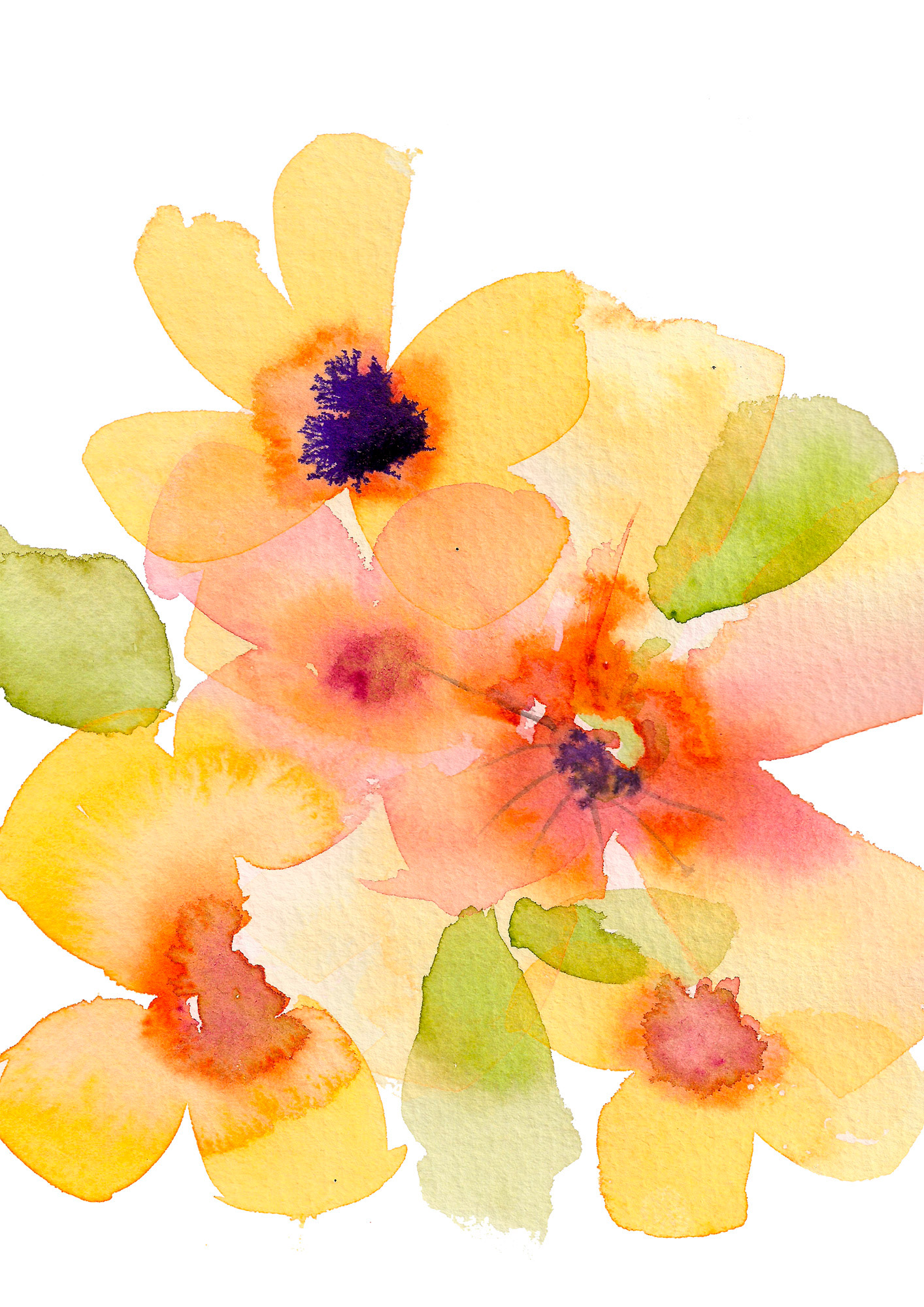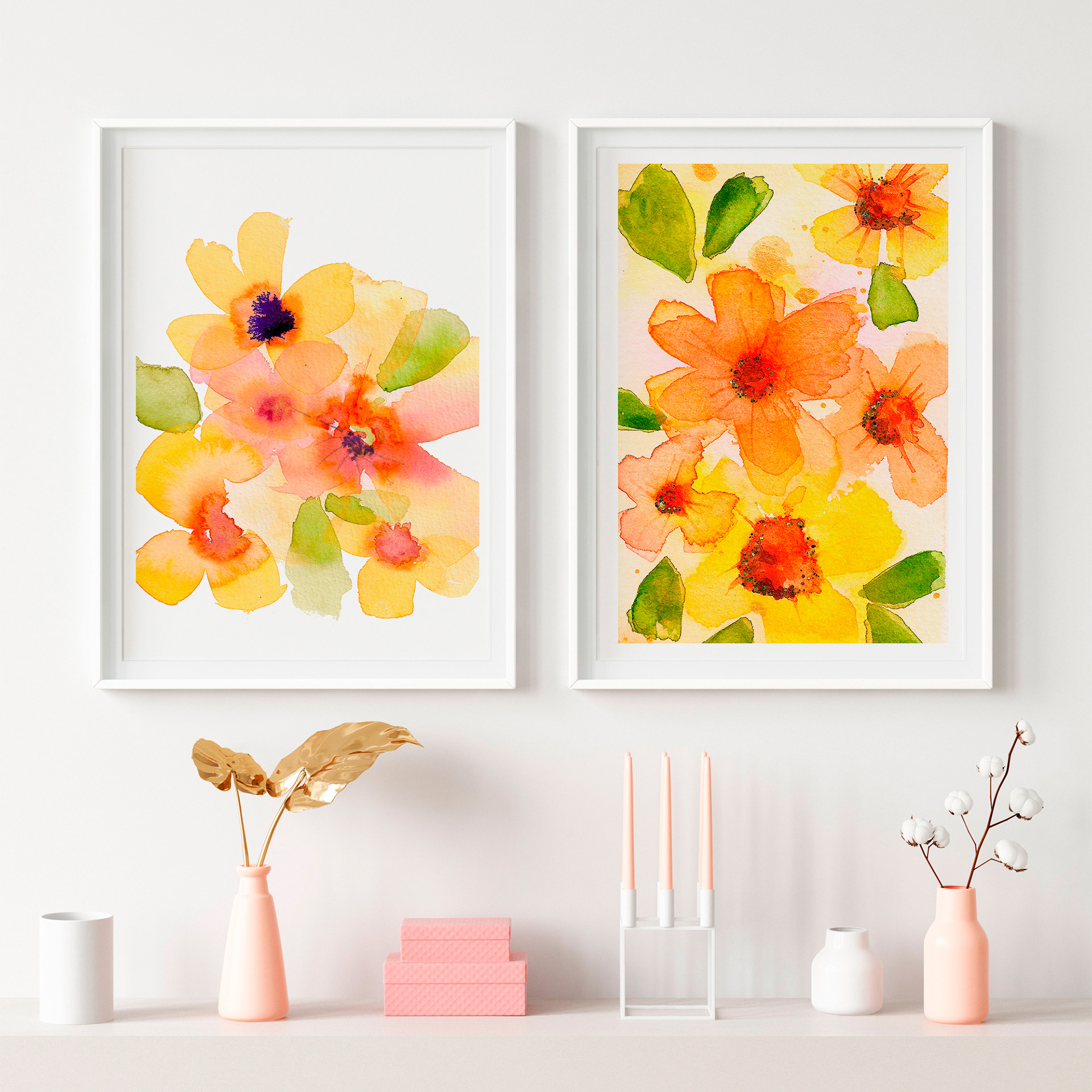 Guías es una pareja de acuarelas florales llenas de energía y calidez, donde los tonos amarillos y naranjas vibran sobre el papel como rayos de sol. Con un estilo suelto y moderno, estas obras transmiten vitalidad, optimismo y frescura.
