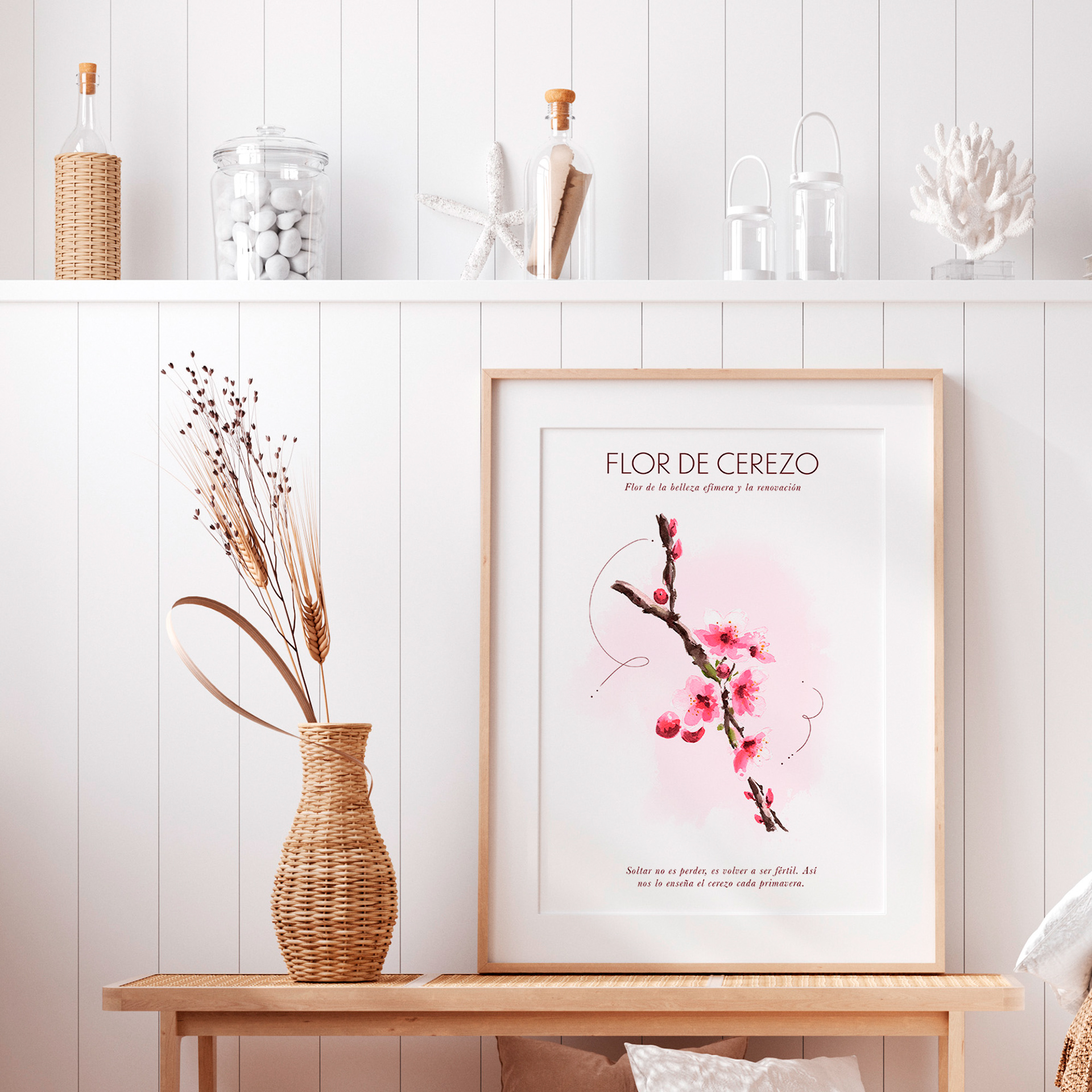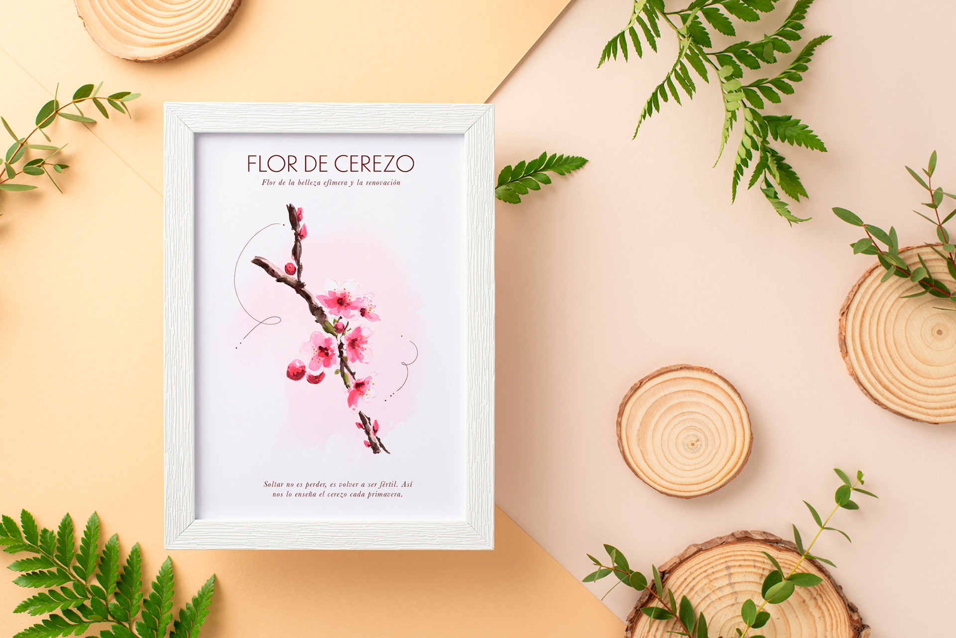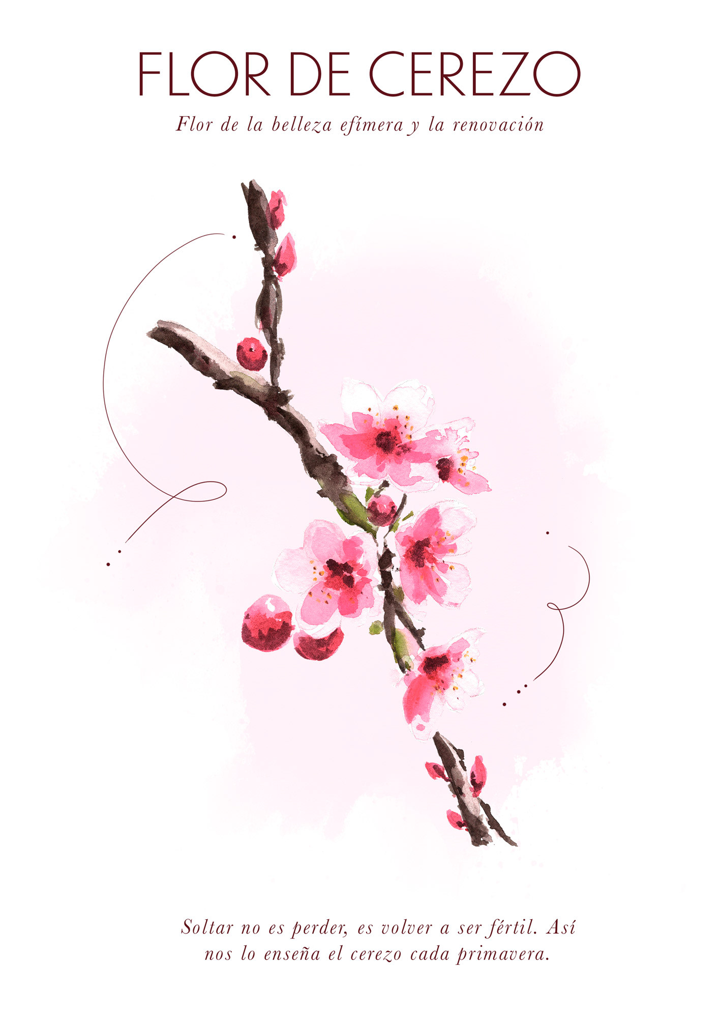 Obra en acuarela que captura la belleza efímera de la flor de cerezo, símbolo de renovación y primavera.