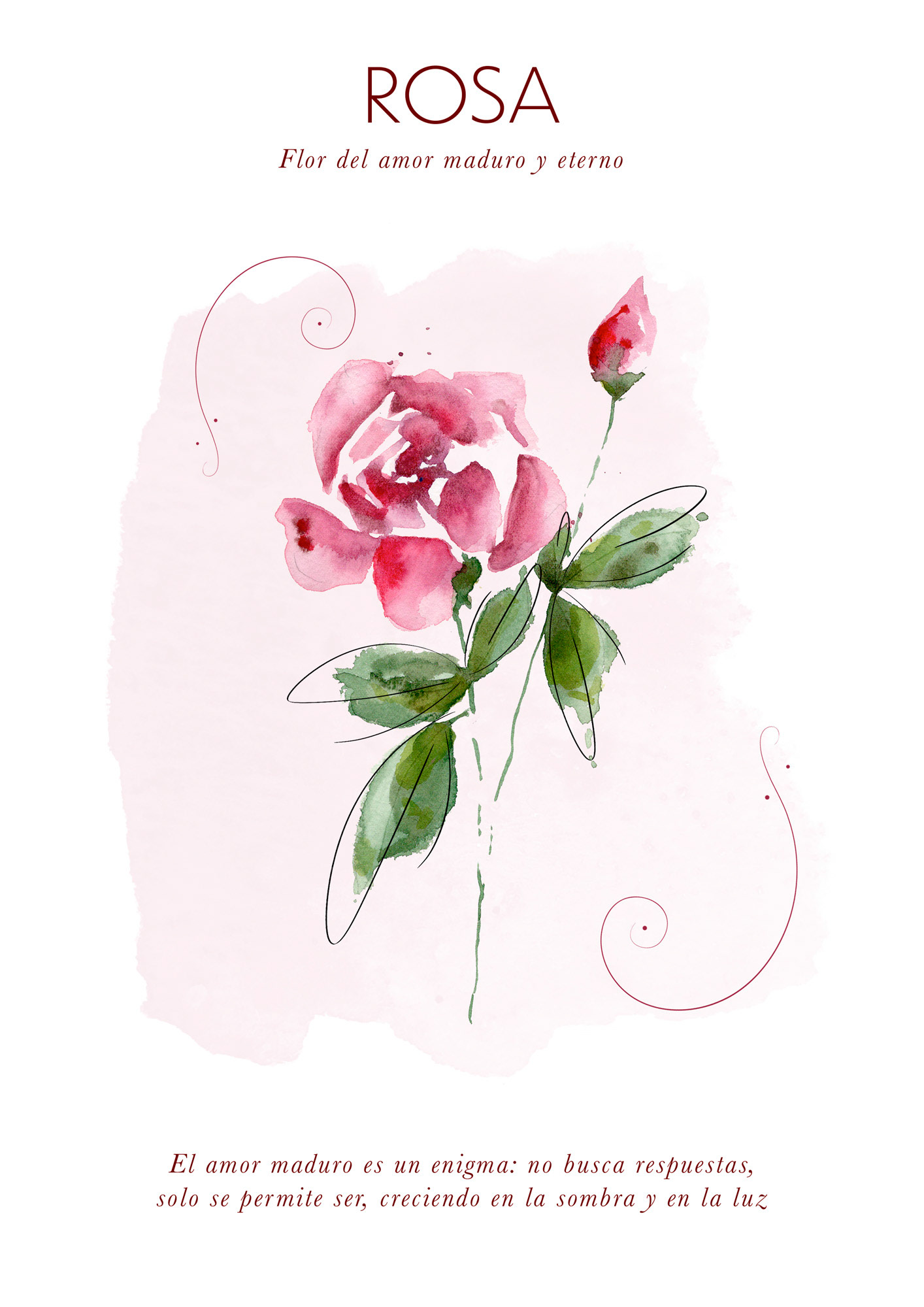 Una interpretación en acuarela de la rosa, flor del amor maduro y eterno. Un trabajo que combina sensibilidad pictórica con un enfoque botánico.